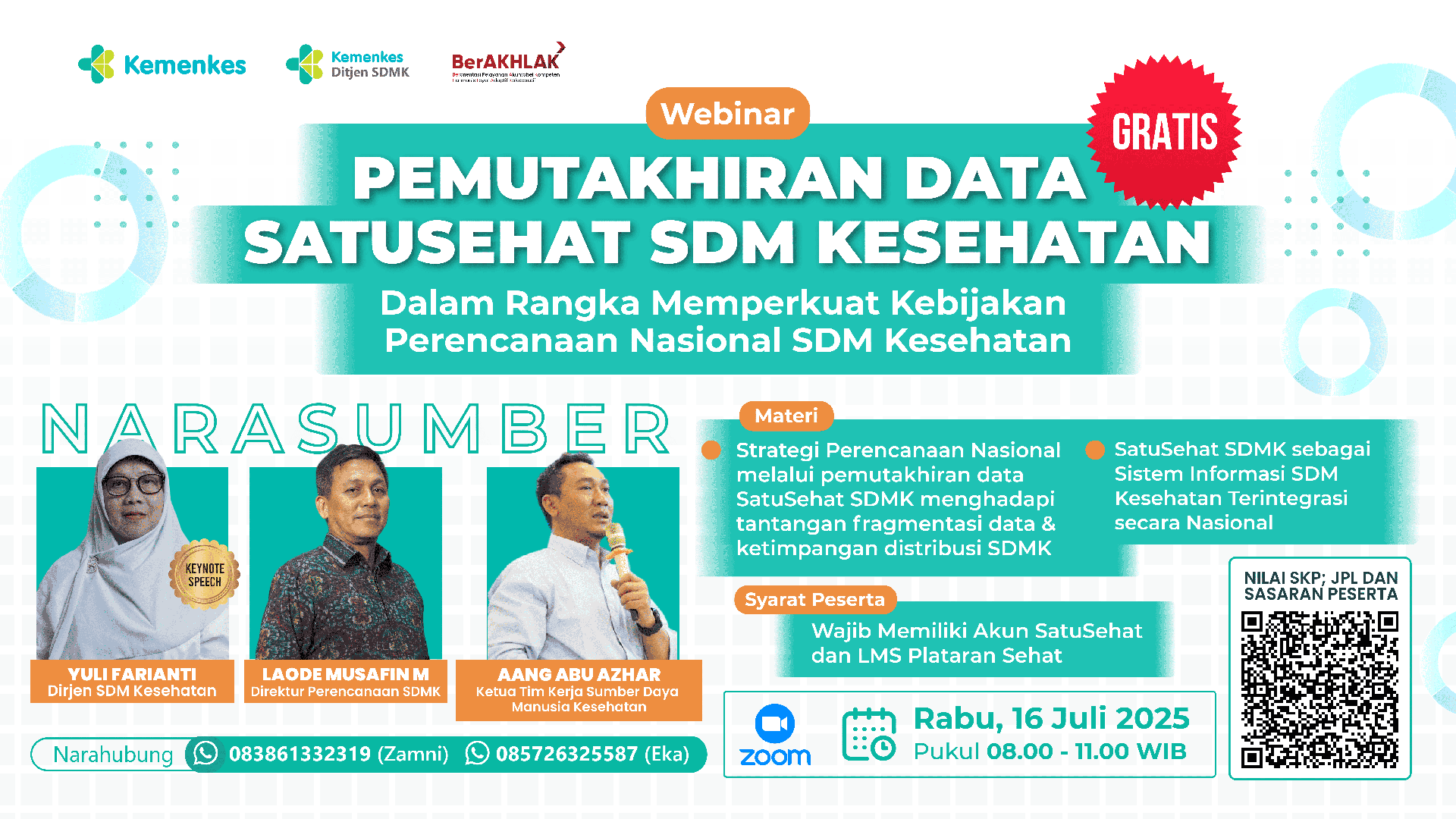 Meningkatkan pemahaman dan kapabilitas tenaga medis, tenaga kesehatan dan stakeholder terkait untuk pemutakhiran data pada platform SatuSehat SDM Kesehatan untuk memperkuat perencanaan kebijakan SDM Kesehatan yang lebih presisi dan berbasis data